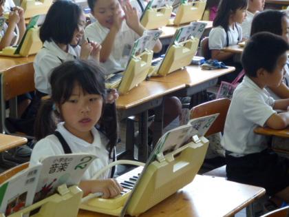 ☆ 2年 音楽③ 公開日 2012/06/22 更新日 2012/06/22 2年生 6月22日(金) 写真上:上手に演奏できています。 中:元気いっぱいに手を挙げてくれました。 下:弾き方を教えてくれています。 いいね(0)