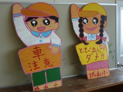 それに、PTAの役員(交通安全部)さんが手分けして、ペンキで色を塗ってくれています。10数枚あるので、少しずつお願いしています。