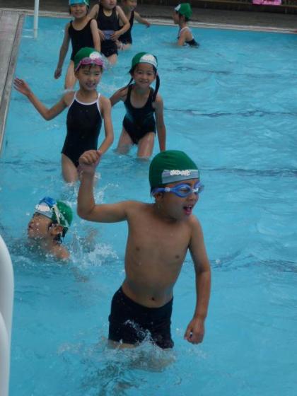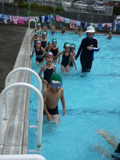 ☆ 1年 「さあ、初泳ぎだ!」① 公開日 2012/06/26 更新日 2012/06/26 1年生 6月26日(火) 1年生、小学校のプールで初泳ぎ。大きなプールに戸惑いながらも、先生と一緒に流水をつくり、楽しんでいました。 写真上:小学校に来てから初めてのプール。少し大きいプールにワクワク。 中:流れるプールを作って遊びます。 下:水が少し入っちゃったかな? いいね(0)