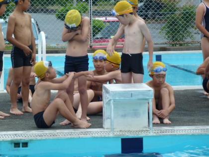 ☆ 3年だって初泳ぎだ!① 公開日 2012/06/26 更新日 2012/06/26 3年生 6月26日(火) 4時間目、1,2年生に続いて3年生も初泳ぎ。体をならしたあと、まずは一人ひとりの泳力を調べます。残りの時間で待望の自由水泳を楽しんでいました。 写真上:3時間目は算数でした。いっぱい頭を使ったから、しっかり冷やそう?! 中:3年生から上の学年は、大プールで泳ぎます。 下:気持ちよさそうだね。 いいね(0)