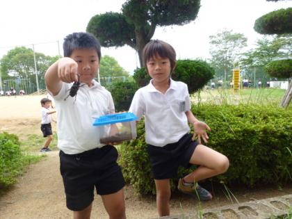 写真上:自慢のクワガタだよ。