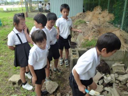 中:ここには・・・内緒だけれど、カブトムシの幼虫がいるんだ。内緒だよ。