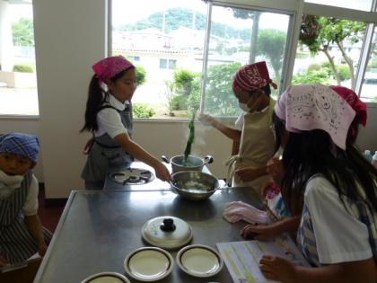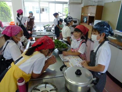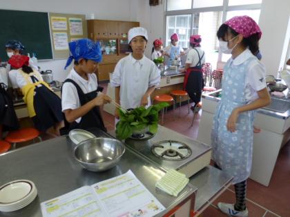 家庭科の調理実習で、「ほうれん草のおひたし」を作りました。