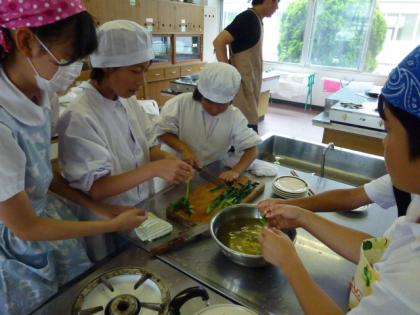 写真上:包丁の持ち方、手つきはまるで料理人(^o^)