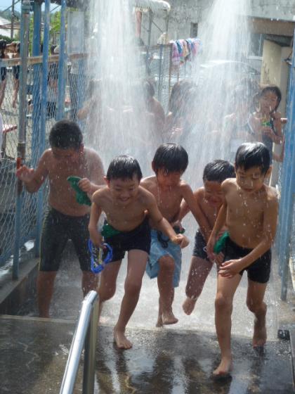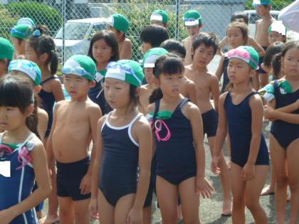 午前9時から低学年(1,2年生)、午前10時から中・高学年(3〜6年)が校内水泳大会を行いました。