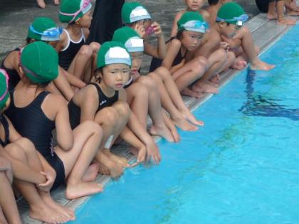 写真上:もうすぐ、泳がなくっちゃ。緊張するなあ。