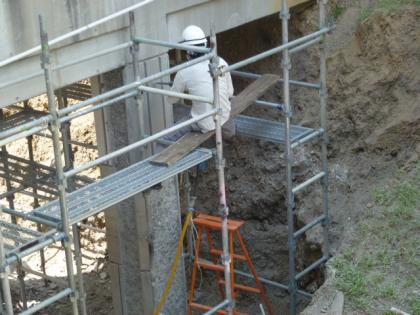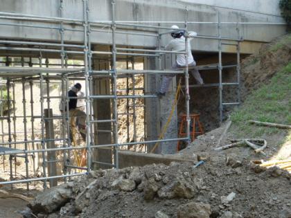 中:足元がしっかいしないところでの作業。気をつけてください。