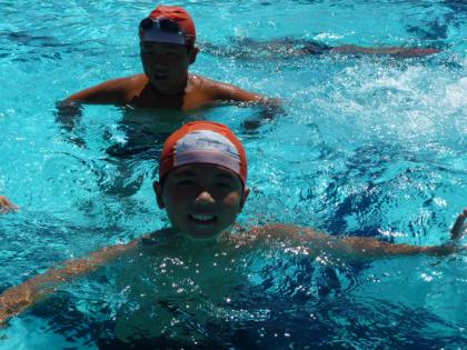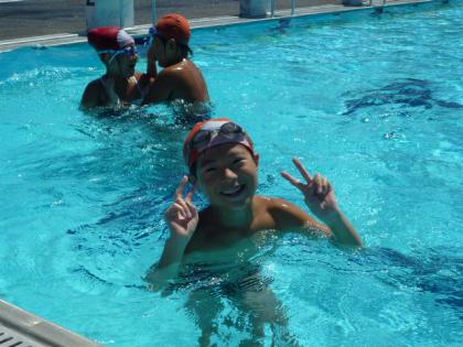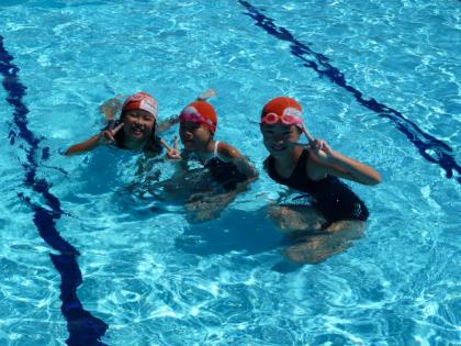下:上から写すと浅く見えるけれど、ここは大プールだね。とっても、幸せそうな3人。