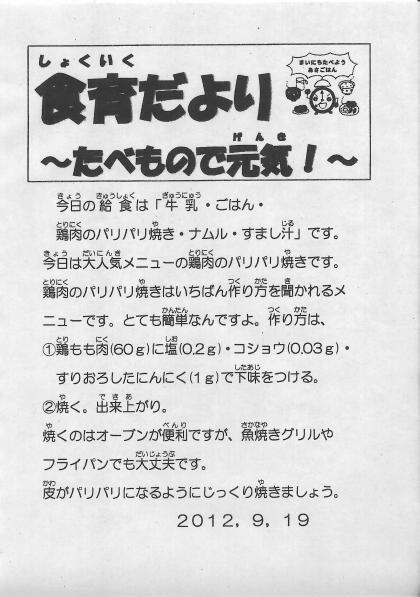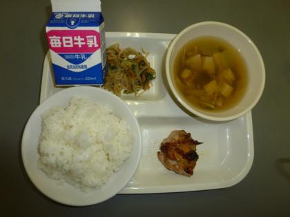 ごはん、とりにくのパリパリやき、ナムル、すましじる、牛乳