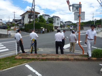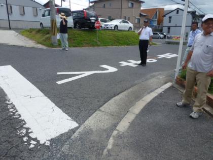 写真上:ここを子どもは自転車や歩いて渡るんです。だから、停止線を下げていただけ