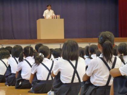 この夏休みに何かをがんばりぬいたり、あきらめずにがんばったりした人は、自分で褒めてください。自分に自信という褒美をもらえたのです。自信をもつには、一つのことをやりぬいてみてください。」