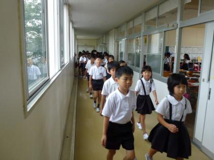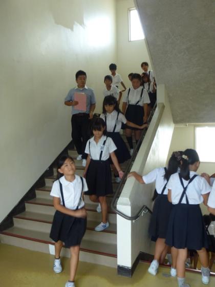 下:四年生、一番近い階段から逃げます。