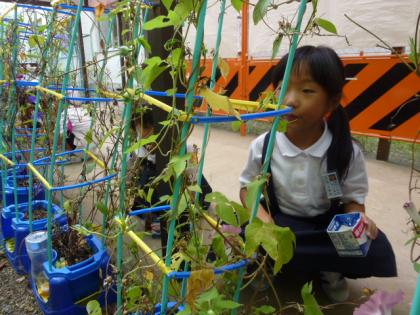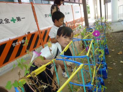 下:夏休みが終わってもまだまだアサガオは咲き続けます。