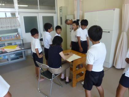 今日が2計測(身長&体重)の最終日。高学年の日でした。保健室では、6年生に続き5年生が計測をおこなっていました。