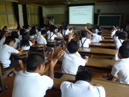 写真上:子どもたちもよく考えながら問題を解いていました。