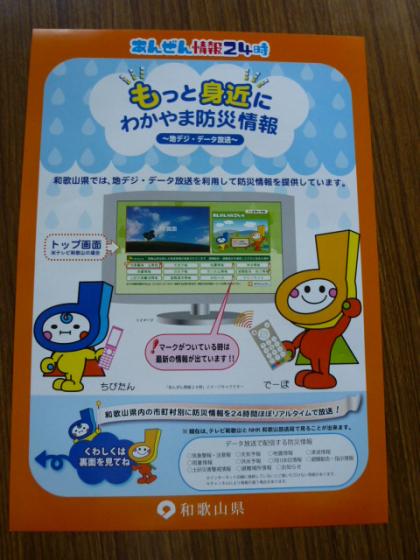 下:和歌山県では、防災情報について地デジで知ることができます。