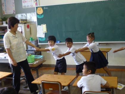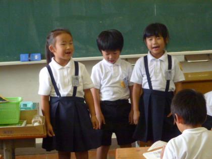 絵本でおなじみの「大きなかぶ」を班ごとに役がらを決め、それぞれが覚えたセリフと演技でうまく表現できていました。ちなみに、先生がかぶ役でした。