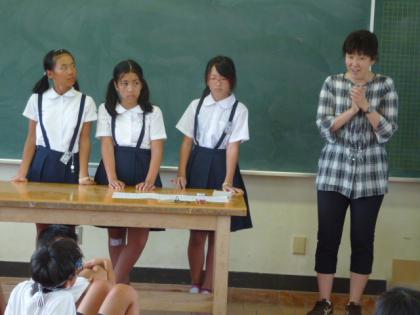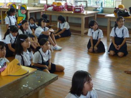 写真上:こちらは報道委員。お昼の放送など校内放送を担当しています。