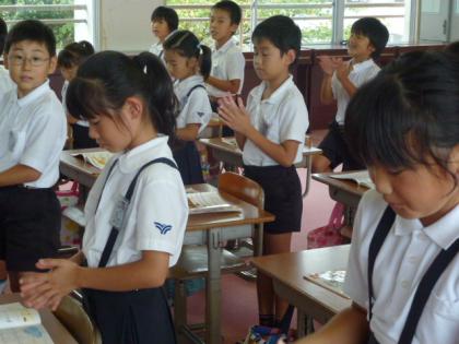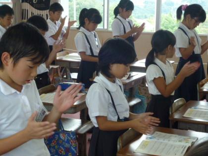 音楽室からきれいな歌声が聞こえてきました。3年生が合唱曲「きょうりゅうとチャチャチャ」を手拍子を交え、元気よく歌っていました。