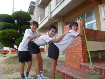 写真上:そうじが終わり、これから片付けには入るはずですが・・・
