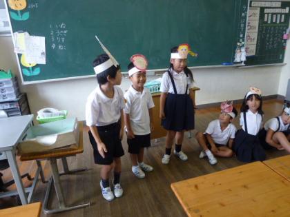 子どもたちは、お話の登場人物になって、明日学年で劇の発表会を行います。