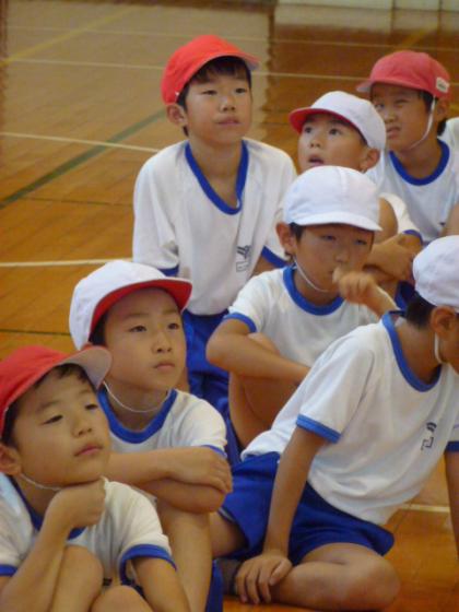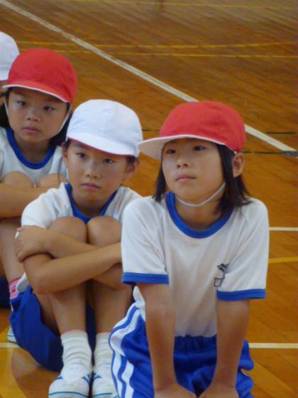 中:先生のお話を注意深く聞いています。