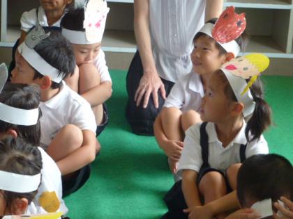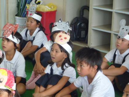 国語の時間に、「おおきなかぶ」の劇の練習をしてきていました。今日、発表会をおこないました。他からの観客は、なんと1名(カメラメン兼)でした(^v^)