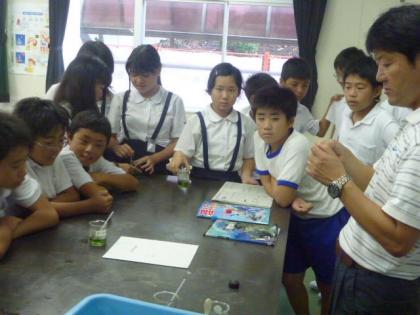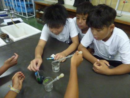 中:班ごとに、本当に中性かリトマス紙を使って証明です。