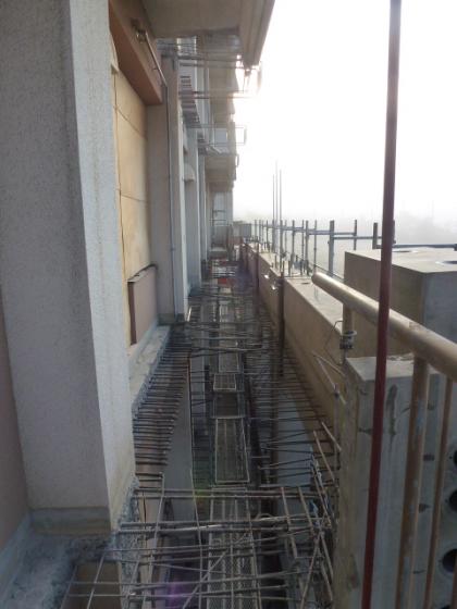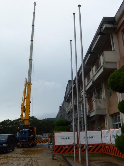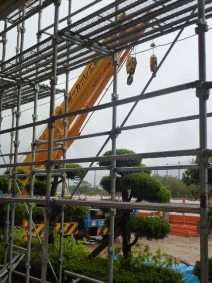 中:こんなに高いクレーンで重い資材をつり上げています。