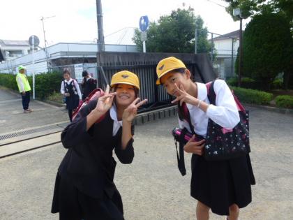 写真上:今日も朝から校門でスマイルを見つけましたよ。