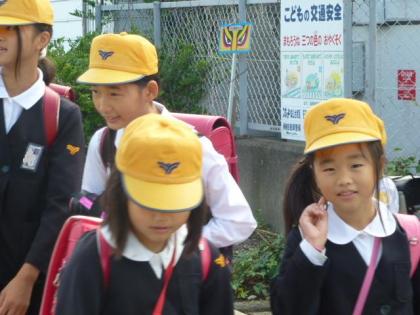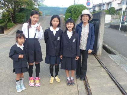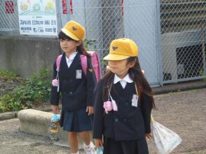 写真上:毎日元気いっぱいに登校しています。