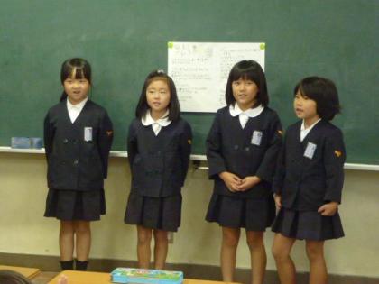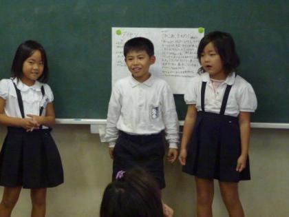 写真上:緊張しながらもちゃんと前を見て発表できました。