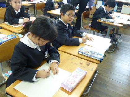 「おうちにいるいきもの(かっているもの)をかこう」との課題に、子ども達はそれぞれに思い浮かべて描いていました。犬、猫、小鳥、ハムスター、金魚や熱帯魚はもちろん、カマキリの幼虫などユニークなものもありました。