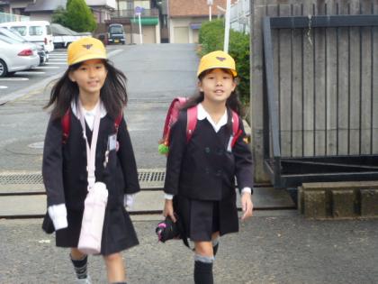 写真上:仲良し2人組で、楽しく登校。