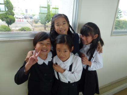 写真上:廊下を歩いていると仲良し組を発見です。