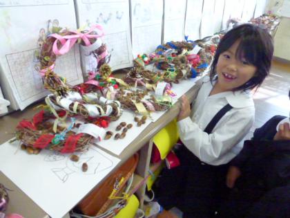 中:1年生は、こんなに素敵なリースを作っています。
