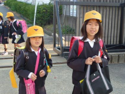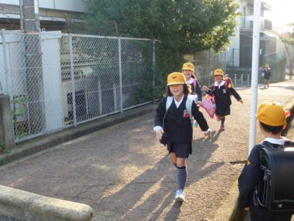 写真上:走って登校。楽しみなことがあるんだね。