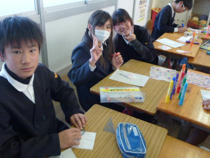 出来上がりを教室の窓に貼ると夕日に透けてとてもきれいでした。