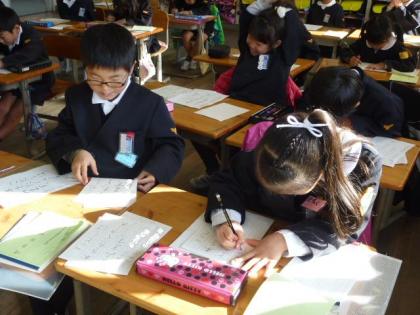 1年生は書き初め会に向けて、硬筆を練習していました。