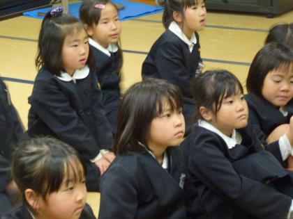 写真上:正座して聞いている子もいますね。