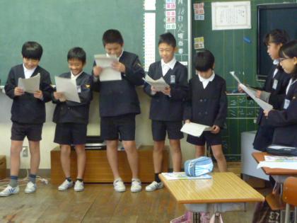 6年生の英語の時間は、童話の桃太郎を英語にして寸劇を行いました。
