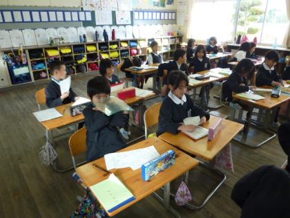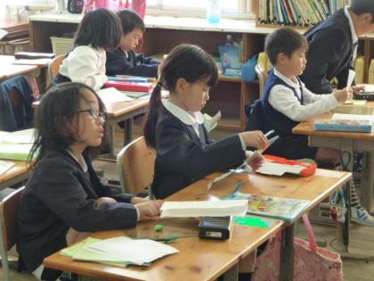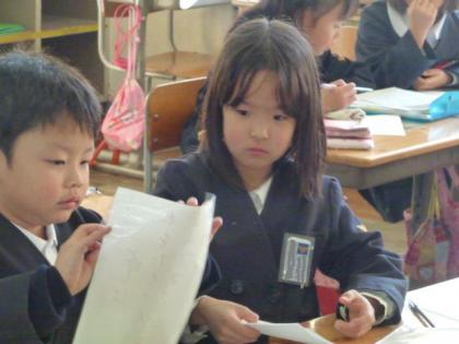 中:自分の書いた字を見て「うん、これでよしっと。」