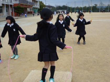 写真上:向かい合って跳び合いっこかな、楽しいね。