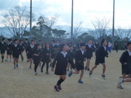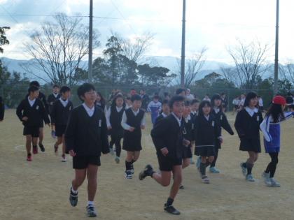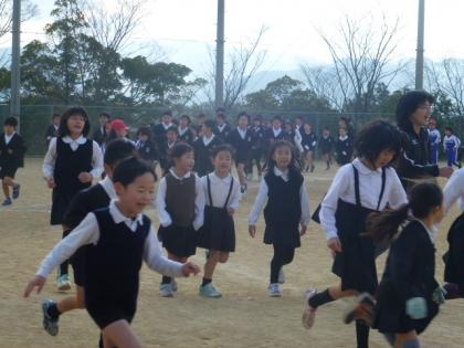中:全校みんなで走ると広い運動場も狭く感じるね。