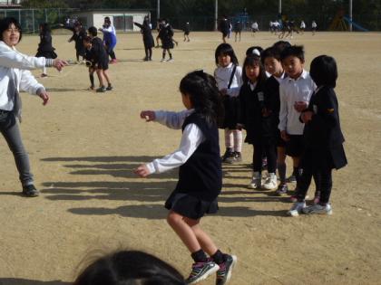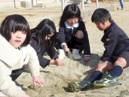 日差しがまぶしく感じる、少し温かい昼休みです。たくさんの子ども達が元気よく外遊びをしていました。