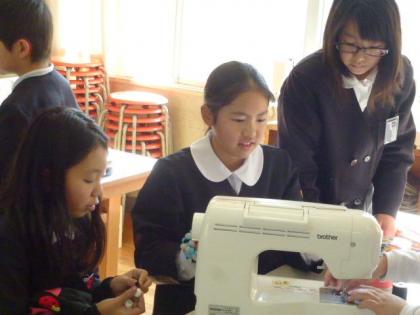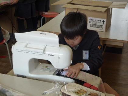 中:ミシンを使えば早くてきれいに縫えるぞ。