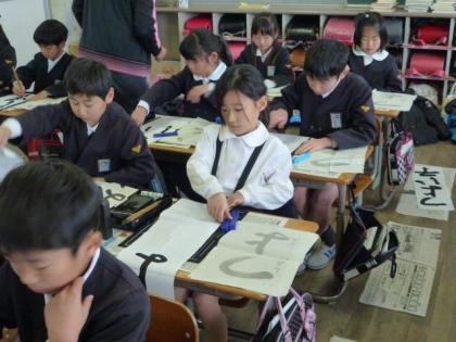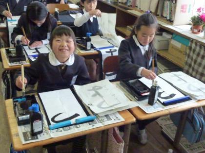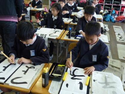 3年生の書き初め課題は「つよい子」です。練習を重ねるごとに、入り、はらい、とめ等がうまくなっていくのが見て取れました。本番まで、もうひとがんばりだね。