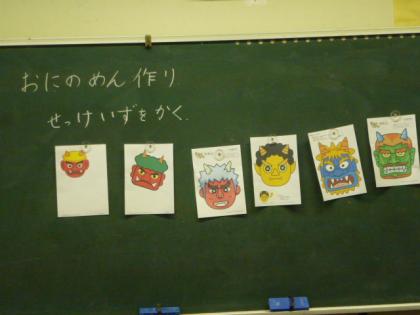 2年生は、鬼のお面を図工の時間に作ったよ。