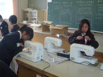 写真上:休憩時間も惜しんでエプロン作り。