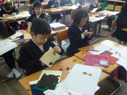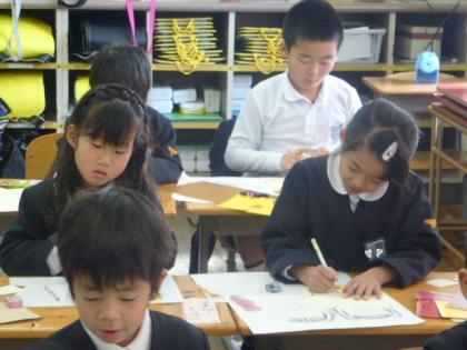 下:子どもたちは、絵とは違う難しさに四苦八苦。